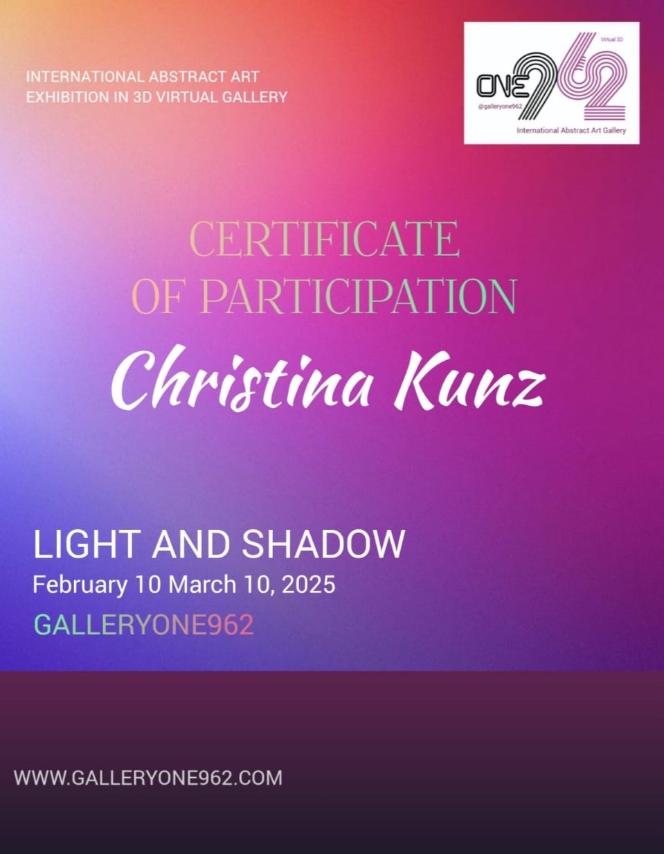 Mein Name ist Christina kunz, ich bin geboren in den 80ern und wohne in Mittelhessen. Ich habe zunächst nach dem Abschluss der Schule eine Lehre zur Zahnarzthelferin gemacht. Im Jahr 2004 dann noch die Ausbildung zur Altenpflegerin, 3 - jährig mit Staatsexamen abgeschlossen. Seit 22 Jahren lebe ich mit Depressionen. 2024 bekam ich meine bisher schwerste, es folgte ein Klinikaufenthalt. Dort war Ergotherapie an der Tagesordnung und ich habe zum ersten Mal Leinwände gesehen. Dann fiel mir ein Buch in die Hände in dem das Pouring beschrieben wurde. Also fing ich nach intensivem Lesen an, die Materie zu erkunden. Da es mir echt gefiel, ging ich auf Entdeckungsreise über YouTube, Instagram, Facebook, Google...so kam eins zum anderen. Ich entdeckte Strukturmaterialien und was sonst noch alles dazu gehört. Irgendwann habe ich dann gemerkt, das die Kunst mir ein gutes Gefühl gibt, ja sogar ein Ort für mich ist, indem ich ganz sicher bin - ein Safe Place sozusagen. Ich habe mir ein Mal Zimmer eingerichtet, wo ich mich einfach ganz für mich zurückziehen kann, denn leider sind außer den Depressionen noch andere Dinge hinzu gekommen, wie meine Angststörung. Meinen Beruf hatte ich in der Zwischenzeit aufgegeben. Wer die Medien verfolgt, weiß was dies für ein verantwortungsvoller, aber leider unheimlich stressiger Job ist. Dies war für mich nicht mehr vereinbar mit mir. Nun habe ich meine Website und hatte eine erste digitale Ausstellung bei Galleryone962. Außerdem findet man meine Werke auch in einer Online Galerie, die aufsteigende Künstler unterstützt. Zu meinem Glück fehlt mir noch die eigene Ausstellung, die sich bisher durch meine Angststörung noch nicht realisieren ließ. Wenn dich meine Kunst anspricht und berührt, bedeutet mir das sehr viel. Ein Kauf unterstützt mich, damit ich weiterhin in meiner Sprache sprechen kann.